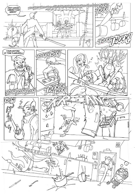 Anderson crashes into kitchen. Cook spins round holding utensils, bandana wrapped around face. Fight!